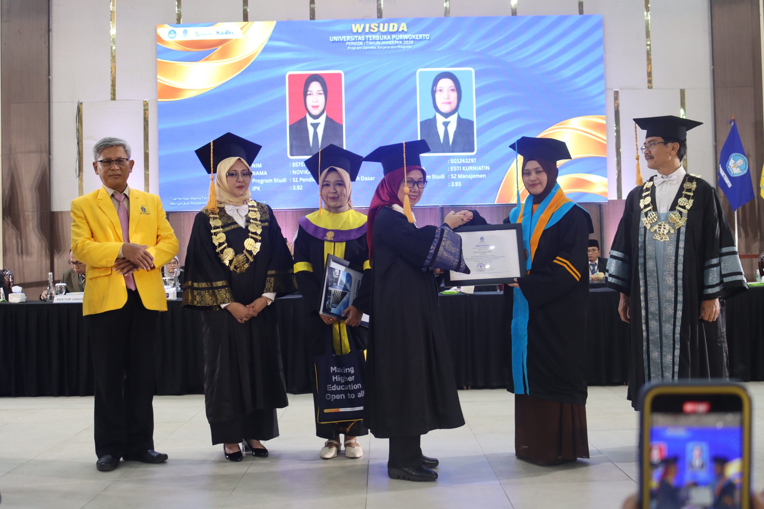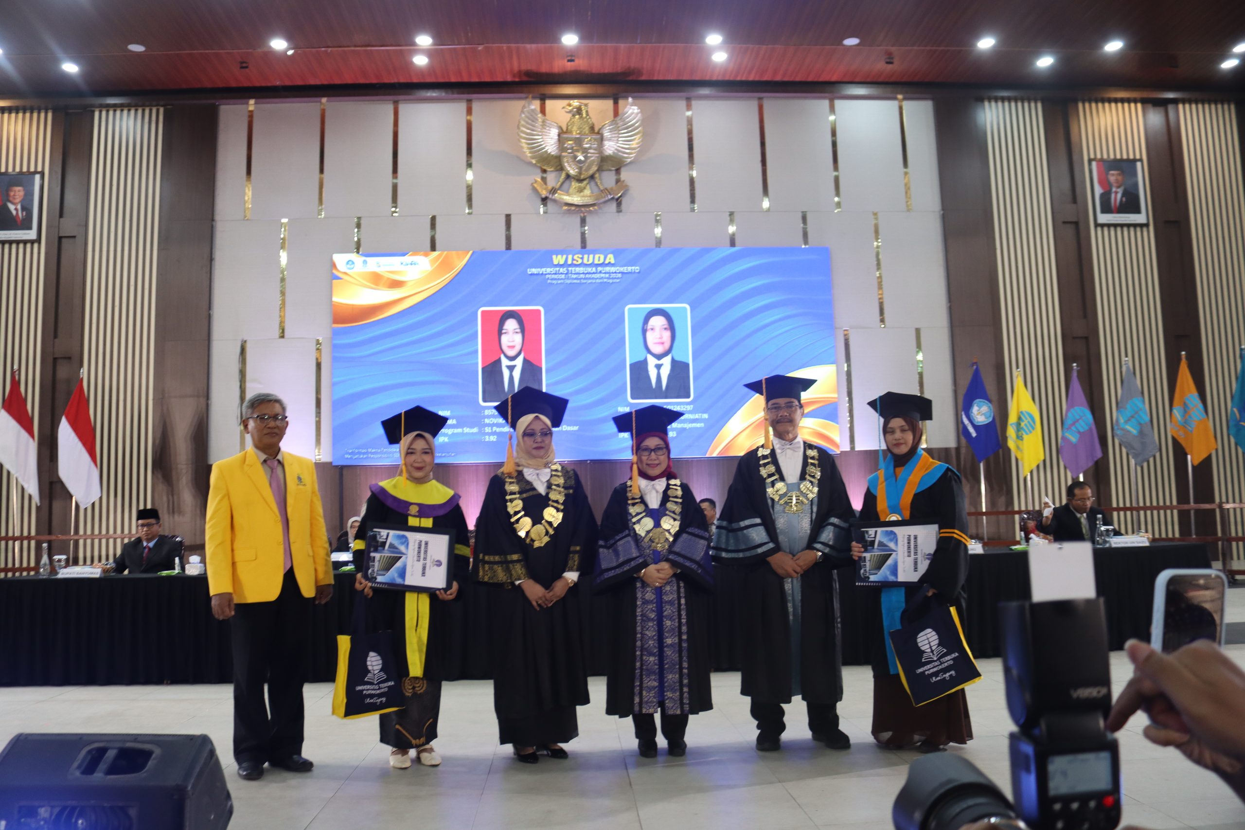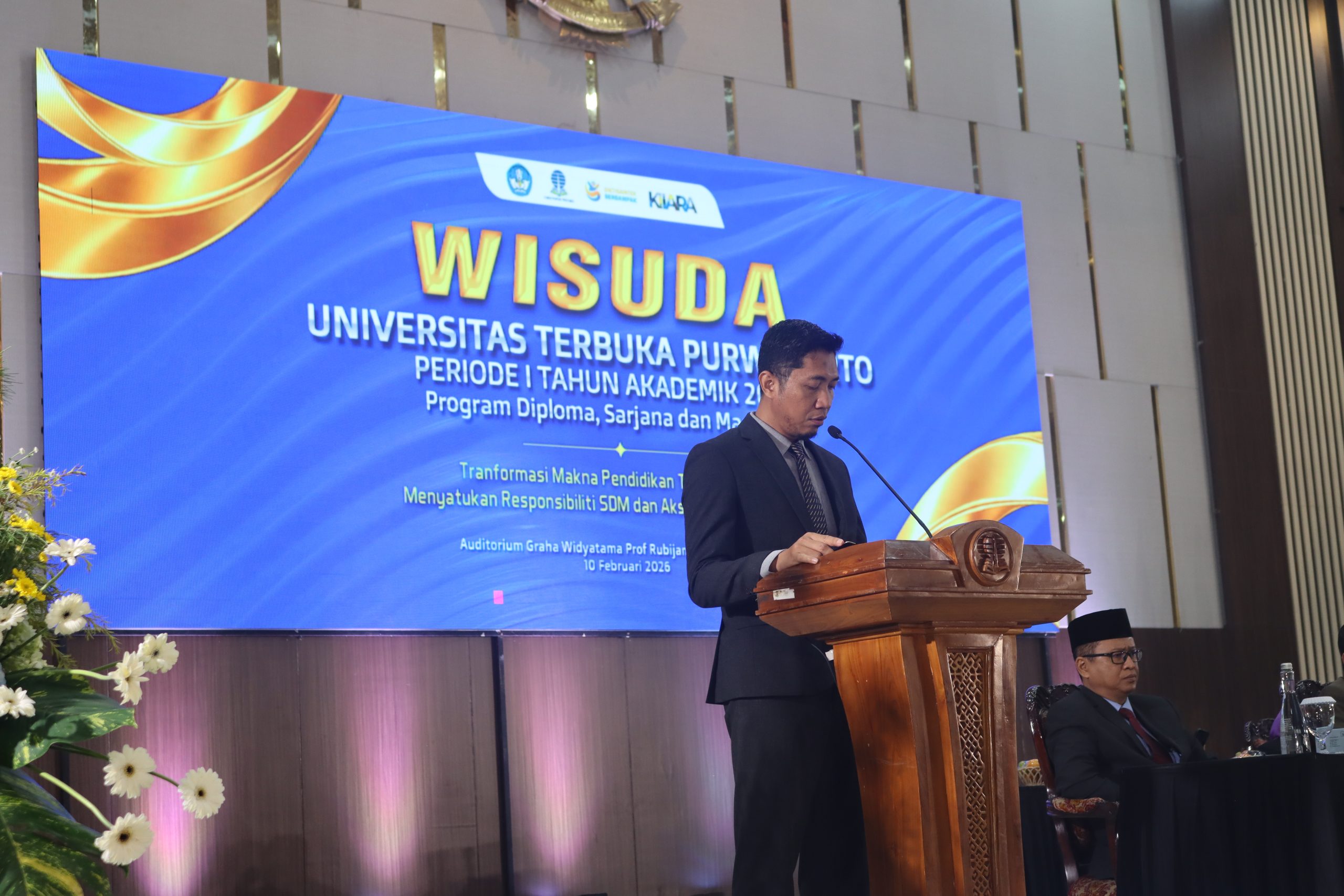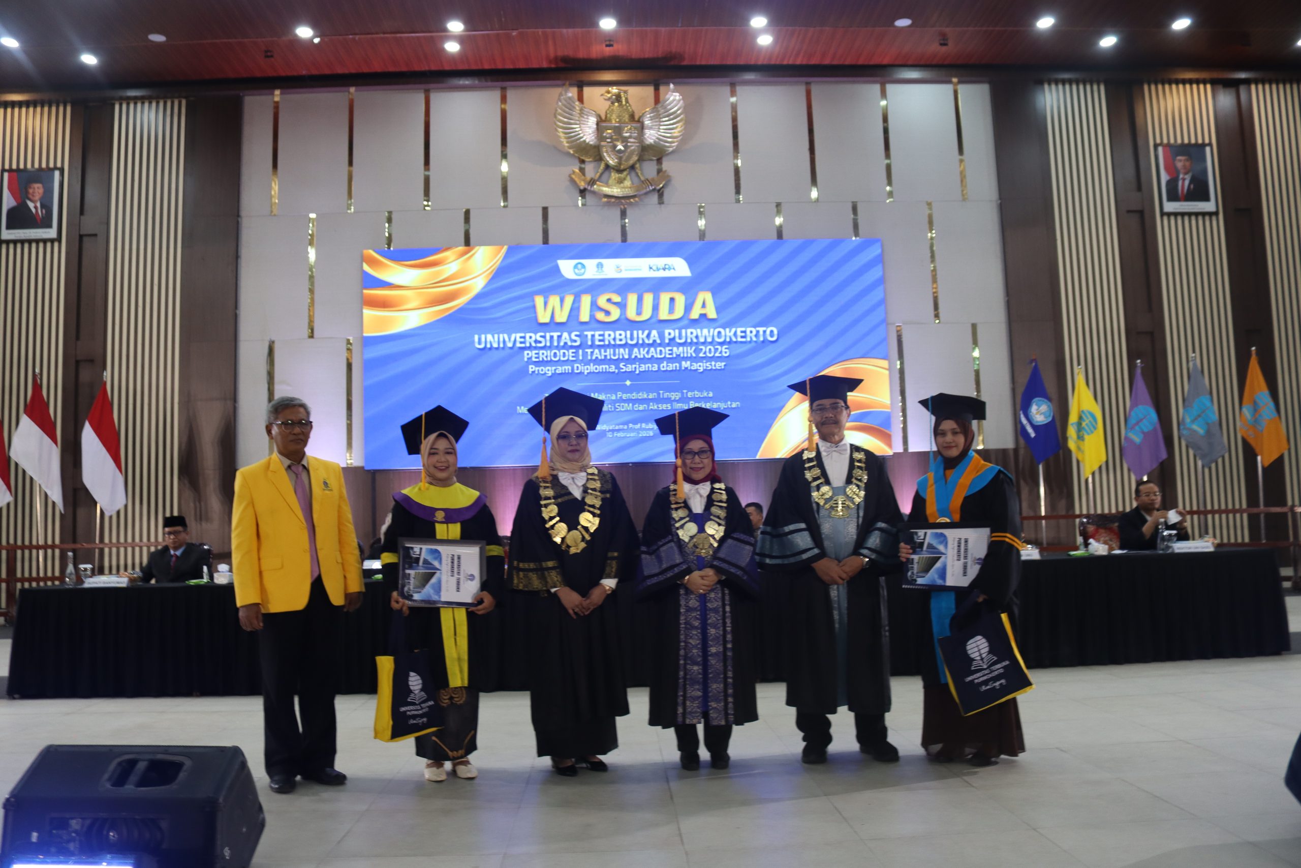 Universitas Terbuka (UT) Purwokerto melaksanakan Wisuda Periode I Tahun 2026 pada Selasa, 10 Februari 2026, bertempat di Graha Widyatama Universitas Jenderal Soedirman (Unsoed), Purwokerto. Sebanyak 884 wisudawan dan wisudawati resmi dikukuhkan sebagai lulusan dari berbagai jenjang dan program studi. Prosesi ini menjadi momentum penting bagi UT Purwokerto dalam menegaskan perannya sebagai perguruan tinggi yang membuka akses pendidikan tinggi tanpa batas ruang dan waktu.